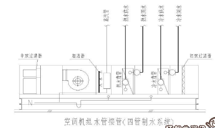 四管:冷水、熱水系統均配有供水管和回水管,能滿足高品質空調環境的要求。